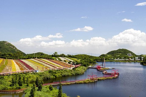 将群山拥抱,沿途山花烂漫,别有一番天地