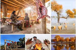 罗布人村寨 千百年来与世隔绝的“最后的罗布人”充满神秘和奇异事件的罗布泊附近,世代生活着一群土著。世代的变迁,让罗布人这个新疆最古老的民族之一逐渐减少仅剩几十户。虽然生活在戈壁沙漠里,这里的村民不种五谷、也不游牧,依靠捕鱼狩猎为生。而罗布村这种甚至说得上是“简陋”的生活方式,却让这里成为长寿村,居民多百岁以上。 世界最大原始胡杨林“轮台胡杨林” 金秋的西北到处都绚烂成一幅油画般的景色,而当大多数游人蜂拥至额济纳,殊不知国内90%的胡杨林都蜷缩于新疆,而全球最大的一片胡杨林也藏在南疆的塔克拉玛干。一无所有的沙漠里却生长出生命力顽强的胡杨林,秋天用炙热的黄展现出蓬勃的生命力。 塔克拉玛干沙漠公路,英雄树 沧桑朽败而不屈服的英雄, 胡杨是生长在沙漠的唯一乔木树种,有着“植物活化石”的称号,因此十分珍贵。而这种神奇树种的生长一直和“凤凰、鲜血”的传说分不开。千年的顽强生命,即便枯萎也不腐朽,仍然站立在这片土地上,静静观望时间的流逝。