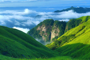 武功山草甸在海拔一千六、七百米左右,绵延数十万亩,多在山顶平缓之处。春翠、夏绿、秋黄是高山草甸的一大奇观,不同的季节,甚至不同的时辰去武功山都能领略到不同的景致,让你留连忘返。据庐山植物园林业专家考证,在如此高的海拔,生长着如此大面积的高山草甸,不仅在中国,乃至整个亚洲都十分罕见。她是江西的一块绿色宝地