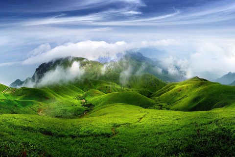 武功山位于赣西萍乡市东约55公里处,横跨麻田、万龙山、华云、新泉、张佳坊等5个乡镇,其山体系片麻岩和花岗岩质,山上弧形状的终碛垄和波状的冰碛丘陵等实属国内罕见,为武功山所独有。另外武功山文化历史源远流长,自汉晋起,即被道佛两家择为修心养性之洞天福地。至宋明时香火达到鼎盛时期,山南山北建有庵、堂、寺、观达30多座。 武功山风景区山体博大,总面积360多平方公里。风景区以峰之奇、岩之险、石之危、松之怪、草之袤、云之魂、雾之逸、瀑之湍、潭之幽、洞之异、禽之珍而闻名。尤其区内云间的高山草甸、红岩谷瀑布群、金顶古祭坛群堪称江南三大绝景,令人神往。 发云界——领略壮观的高山草甸 “天苍苍野茫茫,风吹草低见牛羊”,一提起茫茫草甸,大家都会想到山势平缓的草原地带,可是武功山的十万亩草甸却是位于山势险恶、海拔1500米以上的山顶。