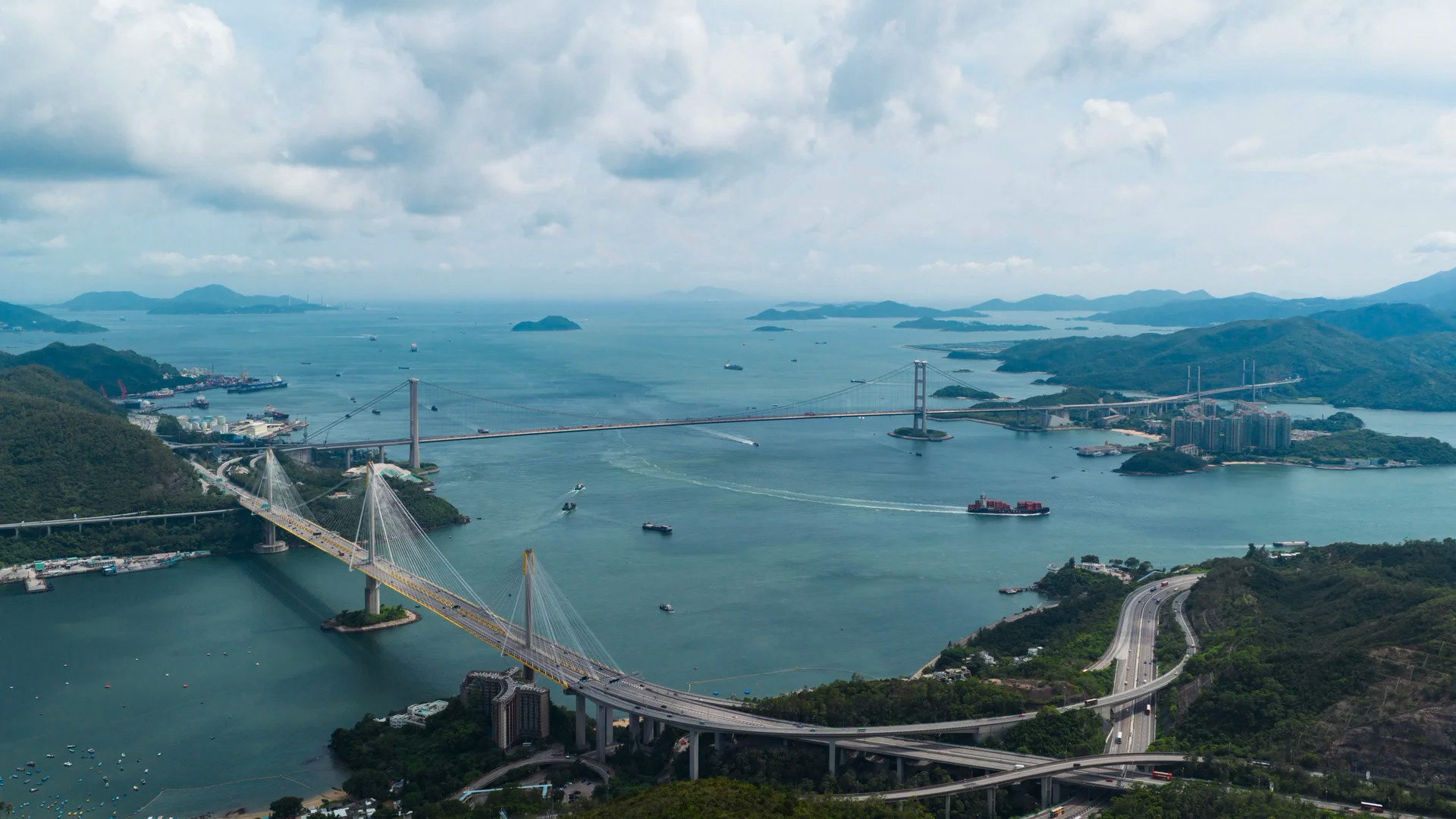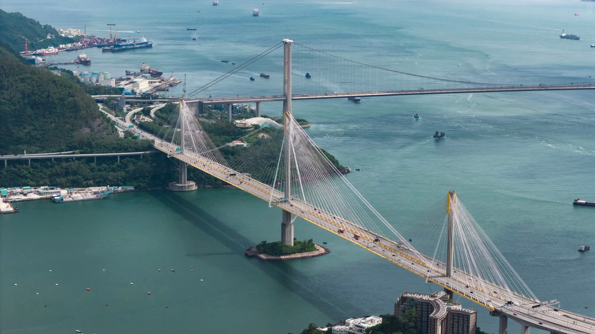其中于1997年开通的青马大桥,全长1.377公里,横跨马湾海峡,曾经是全球最长的行车及铁路双用悬索吊桥,也是香港地标建筑之一。