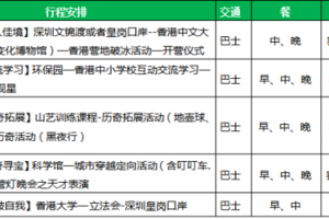 上午:早上9点左右文锦渡或者皇岗口岸集合,在工作人员的带领下乘坐旅游巴士前往【香港】。开启快乐奇趣的青少年香港游学拓展之旅!“香港Hongkong”—我来了!