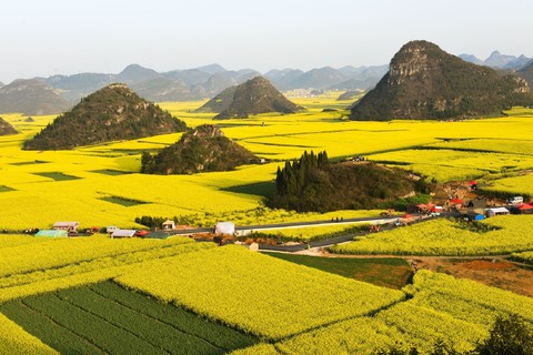 早餐之后前往罗平游览金鸡峰丛的万亩油菜花海(世界吉尼斯之最——世界最大的天然花海——罗平油菜花海,三十万亩油菜花形成的金色花海)