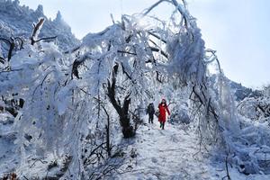 09:00到达山顶---祝融峰,沿路经过紫竹林、邺候书院、湘南寺、南天门、上封寺等历史古迹……从半山亭到南天门有缆车,你也可以选择坐缆车上,但还是不能到山顶(缆车来回是110元左右需自理费用)山上尽是雾凇、冰雪世界。(山顶未必有雪,行程介绍只作为参考)